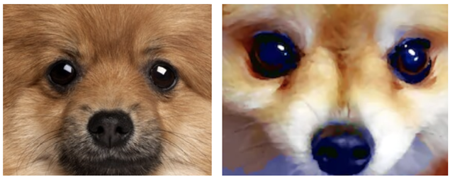从上面的图像中,一个简单的规则可能是如果一张图像包含三个呈三角形排列的黑色圆圈,那么它可以被分类为狗。然而,这一规则会在这张具有相似特征的松饼特写面前失效: