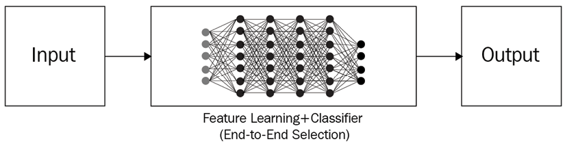神经网络提供了一个独特的优势,即在单一过程同时进行特征提取)和使用这些特征进行分类/回归,几乎不需要手提取动特程整个过程只需要完成两个任务:1、已标的数据(例如,哪些图片是狗,哪些不是狗2、和一个神经网络架构。它不需要人类来制定规则来对图像进行分类,这减轻了传统技术对程序员的大部分负担神经网络我们为需要解决是的任务提供相当标注数据的示例。例如,在前面的例子中,我们需要向模型提供多个狗和非狗的图片,以便它学习特征。神如何被用于分类任务的高层次视图如下: