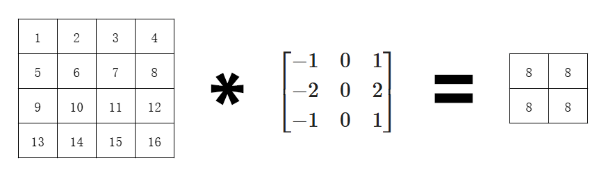 假设图像共有4*4共16个像素,用Sobel算子卷积计算整个图像的x轴方向的梯度(Gradient):