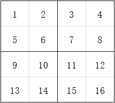 现对矩阵进行最大值池化,池化步长为2,先将矩阵分割为2*2的小矩阵:
