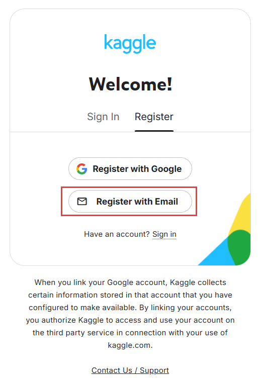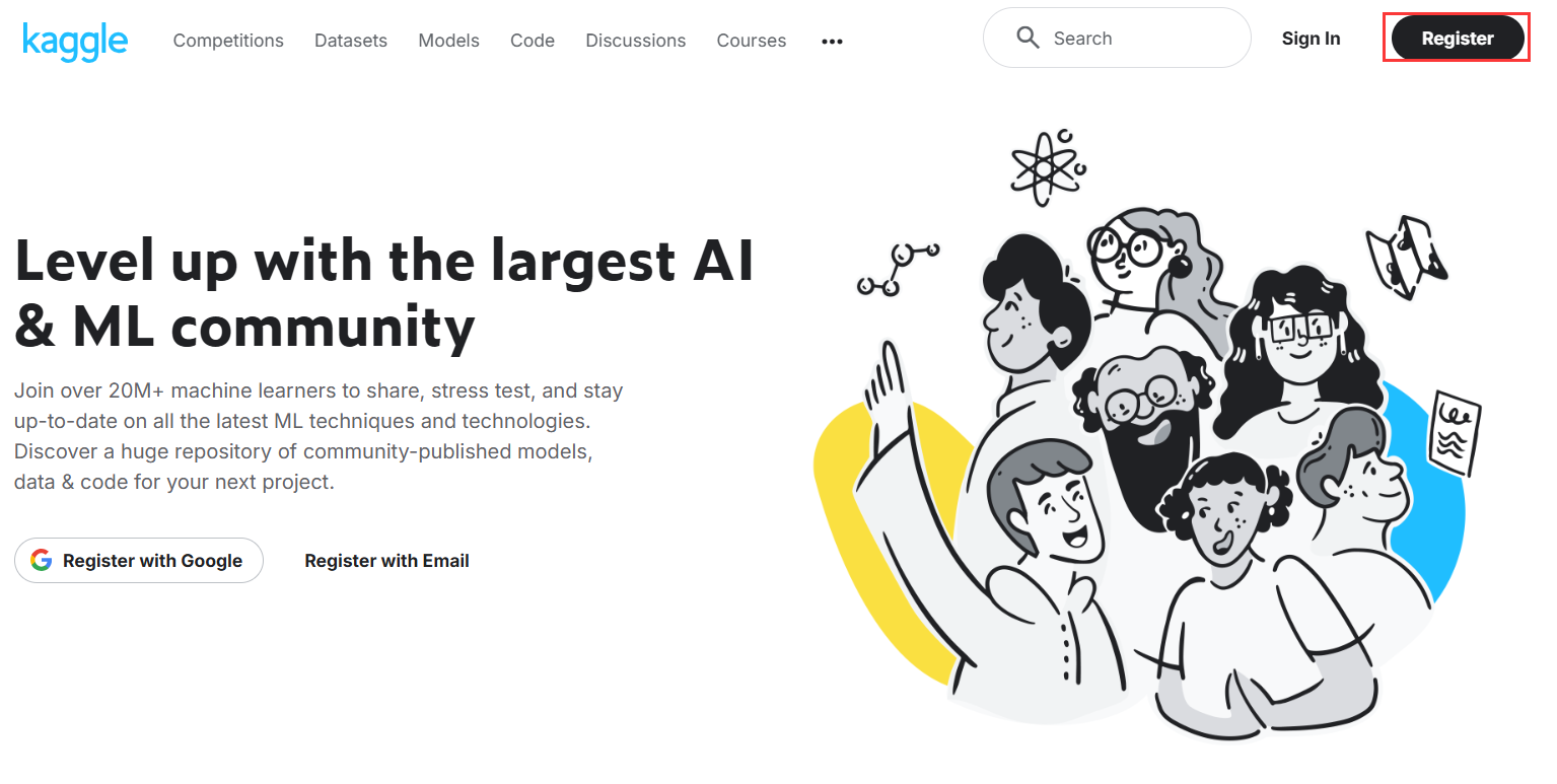 1.1 打开kaggle网站,点击右上角“register”