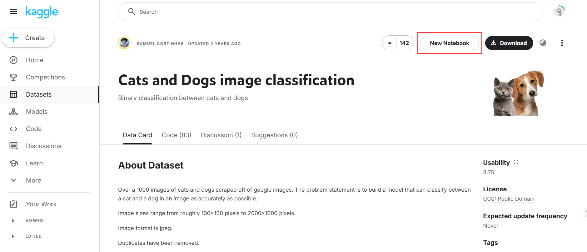 在notebook中可以看到,此notebook包含这个数据集
