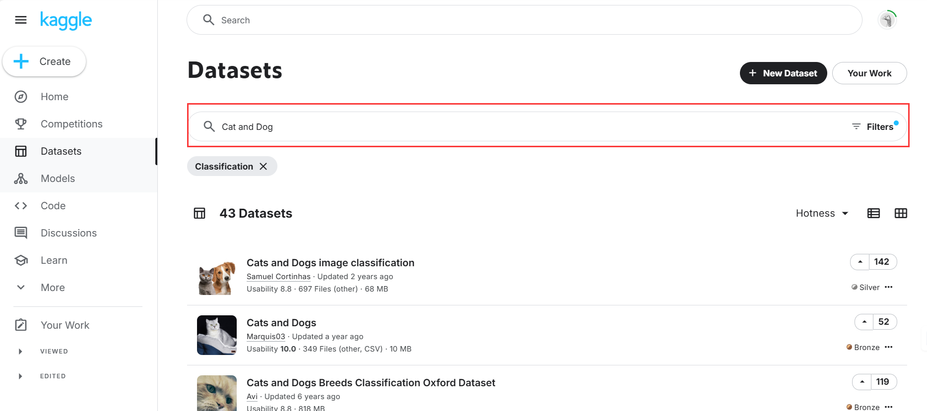 2.2 搜索想要使用的数据集