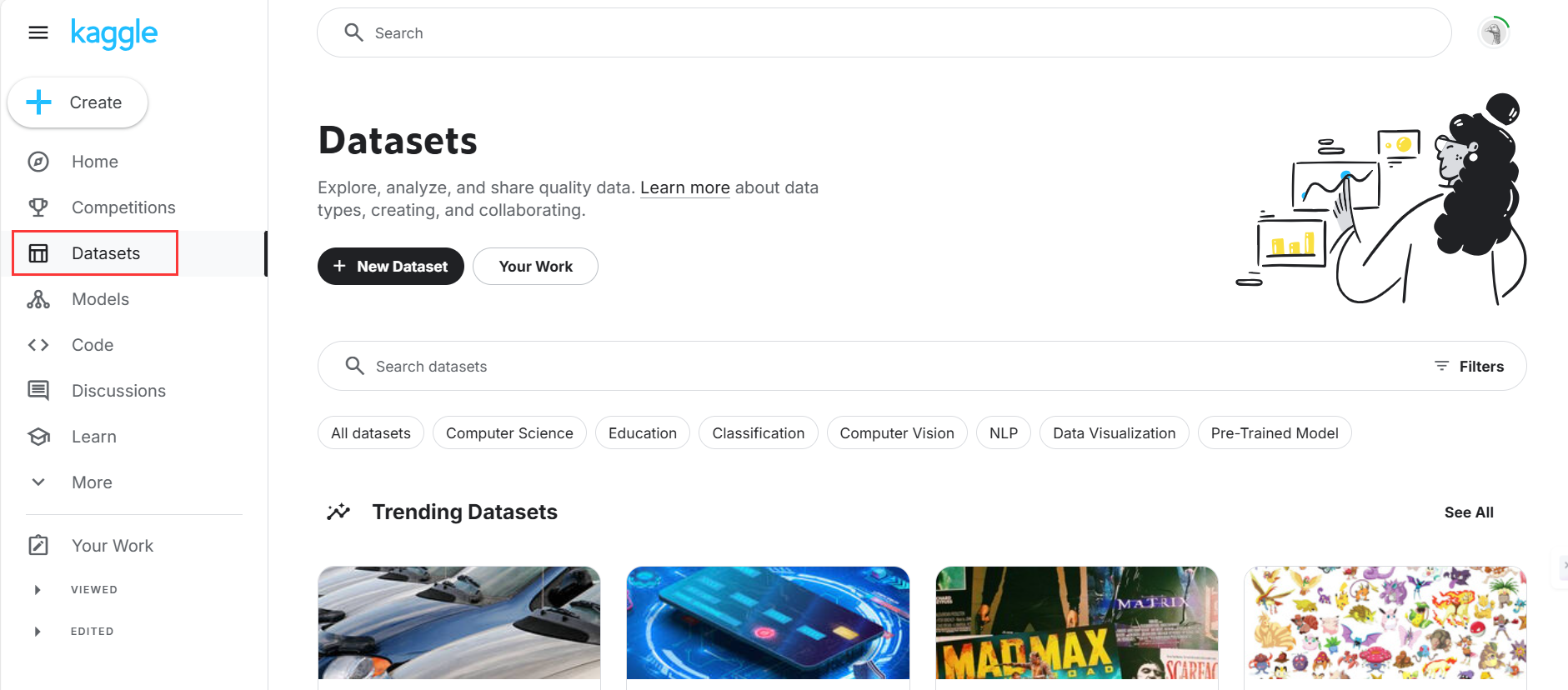 2.1 点击kaggle左侧datasets