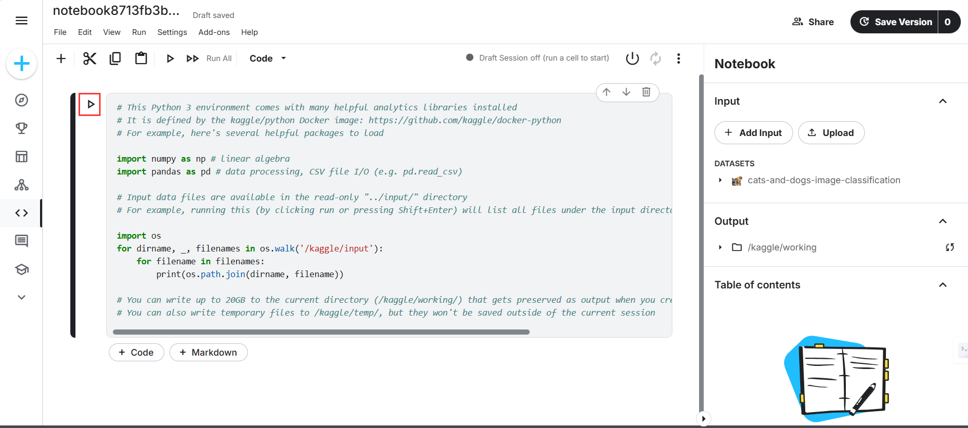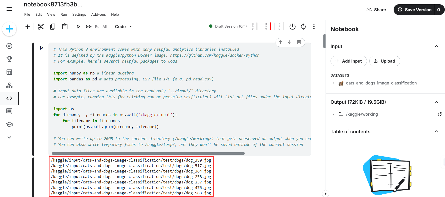 2.5 运行kaggle中包含的初始代码,即可查看这个数据集包含的文件