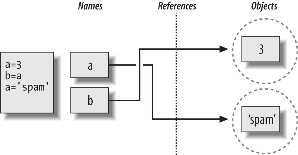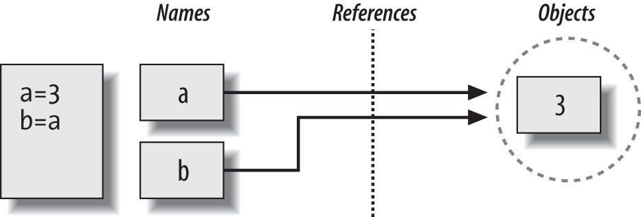 而是替换成a引用的对象(3),最终使得a和b同时引用了同一对象,即指向同一块内存。