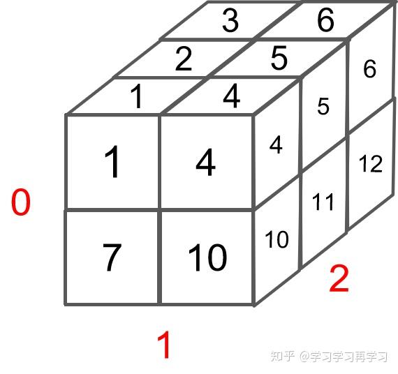 我们可以把3维矩阵看成是2个二维矩阵堆叠在一起: