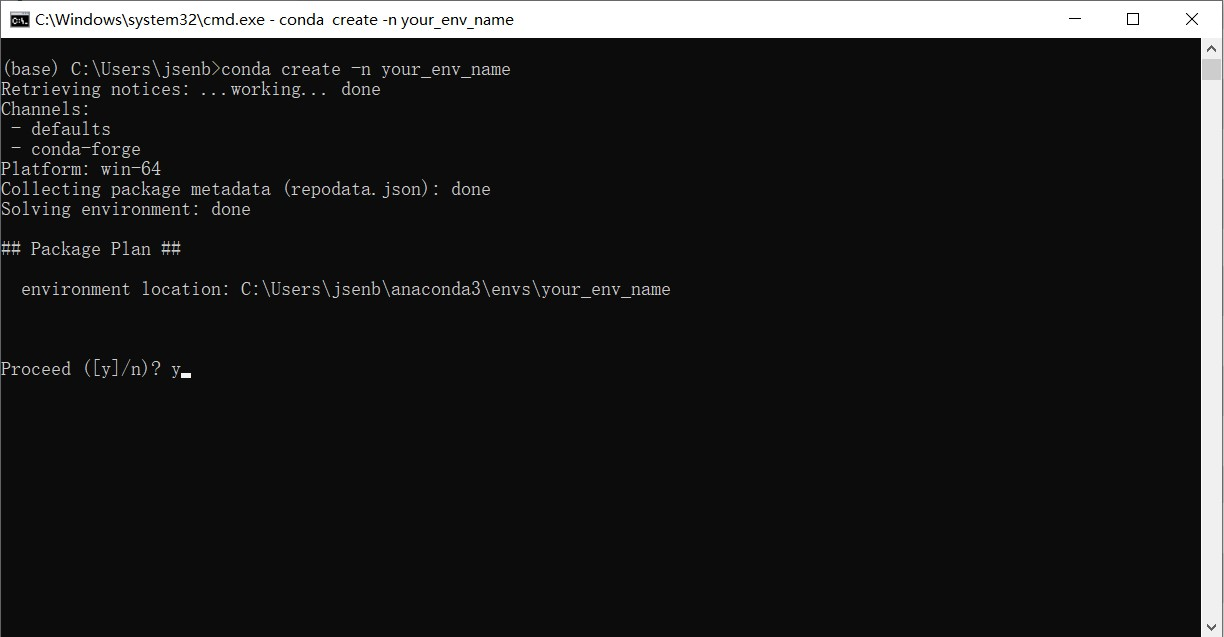 - your_env_name:这是你为新环境指定的名称。你可以根据自己的喜好和项目需求来命名环境。