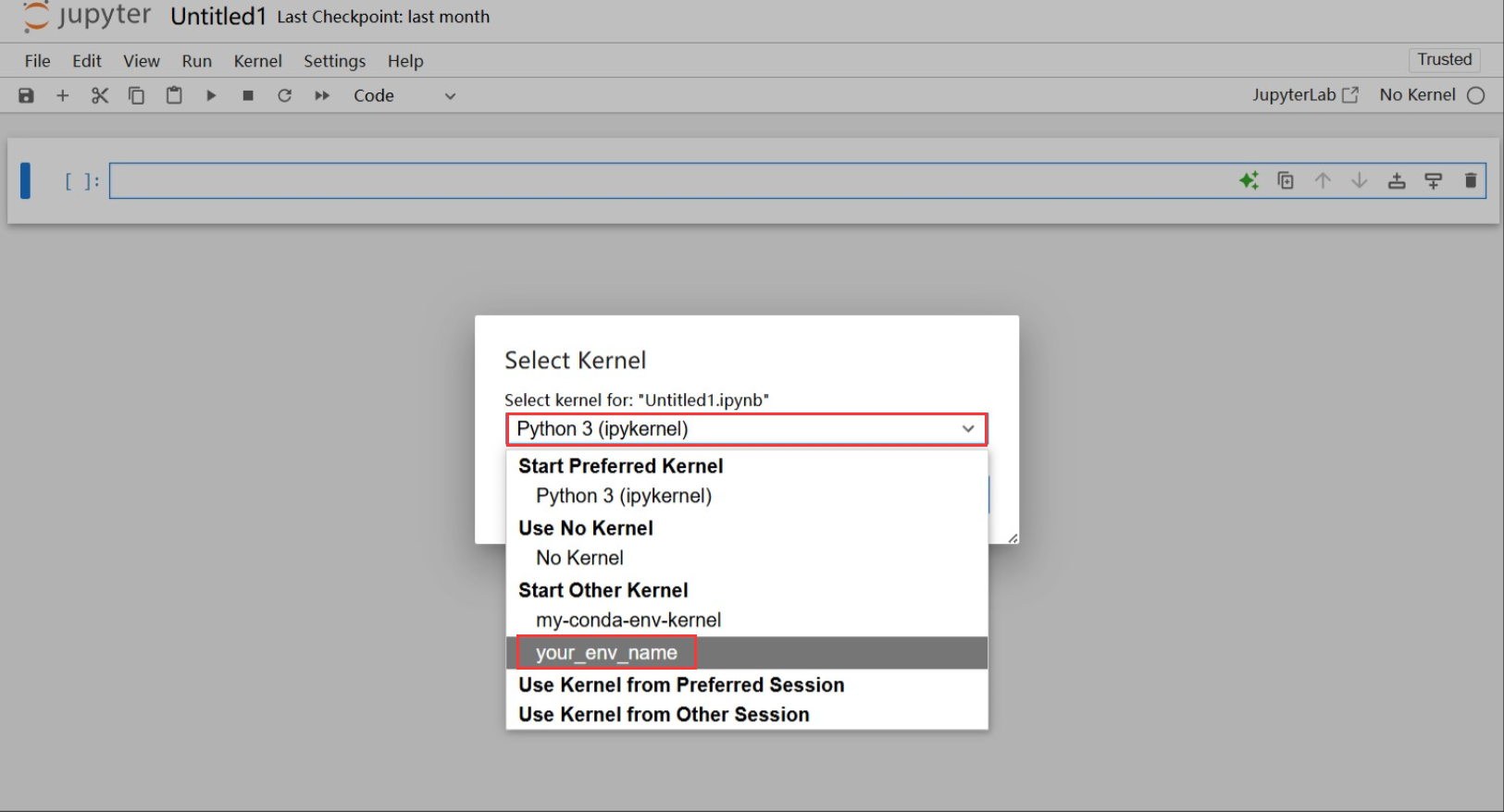 方法二:仅将我们刚刚创建的your_env_name虚拟环境注册到jupyter notebook