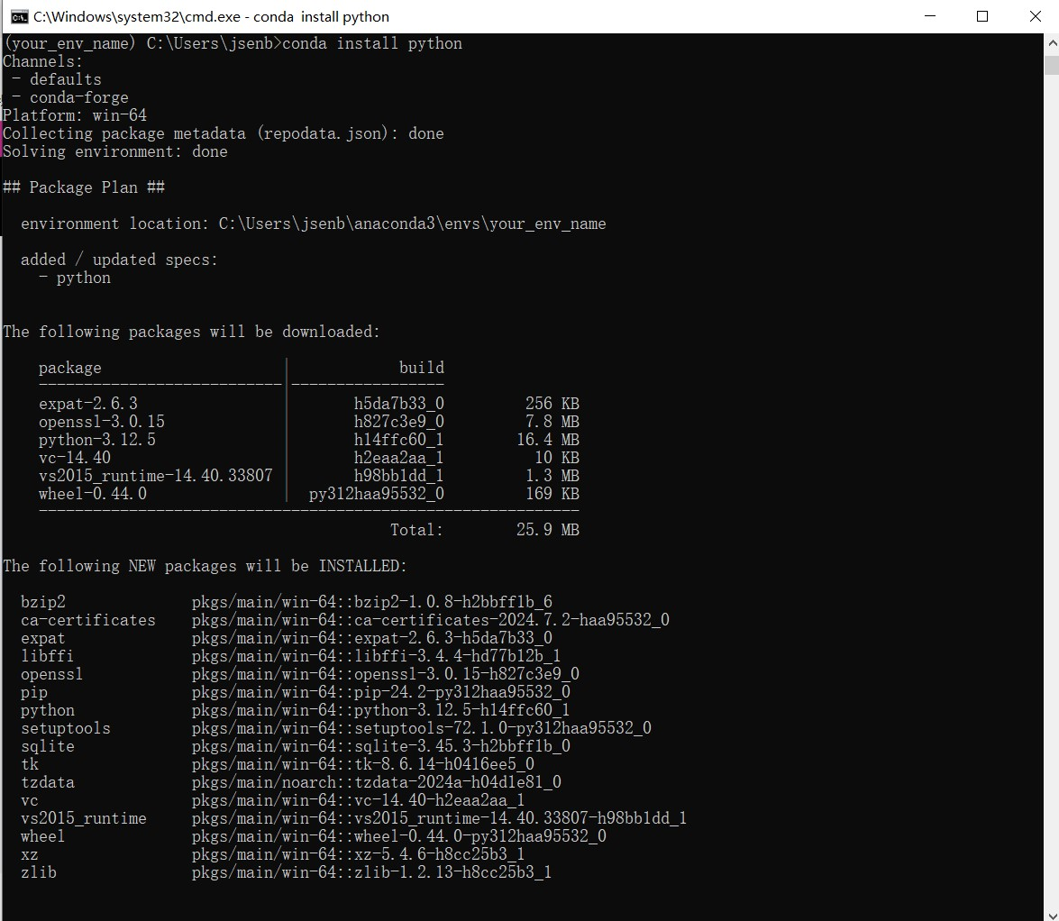 可以指定Python版本:conda install python=3.10,如果不指定,则安装最新版本。